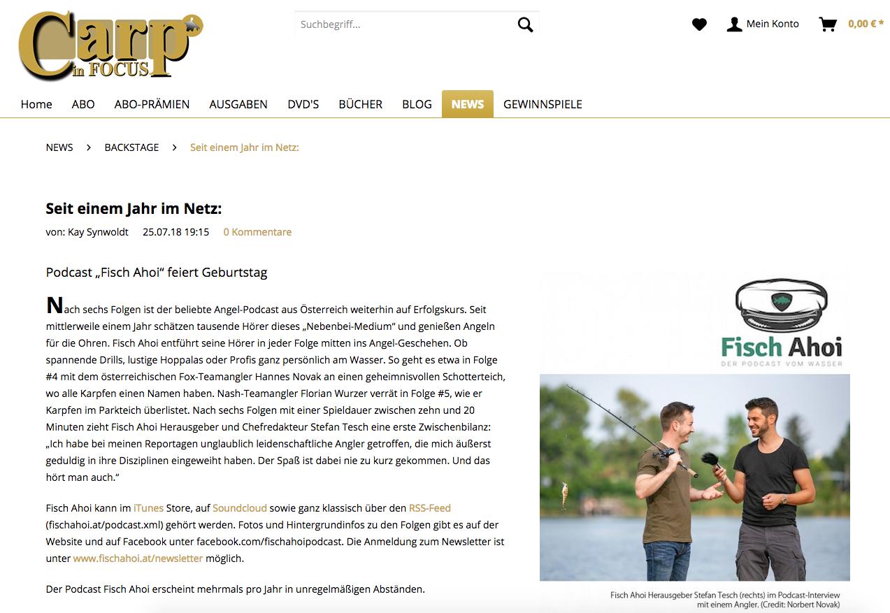 Fisch Ahoi ist die innovative Medienmarke für Angler. Das haben namhafte Angelmedien aus dem deutschsprachigen Raum zum Anlass genommen, über uns zu berichten. Hier ein kleiner Auszug (Screenshots klicken, um zum Beitrag zu gelangen oder das Clipping zu vergrößern):